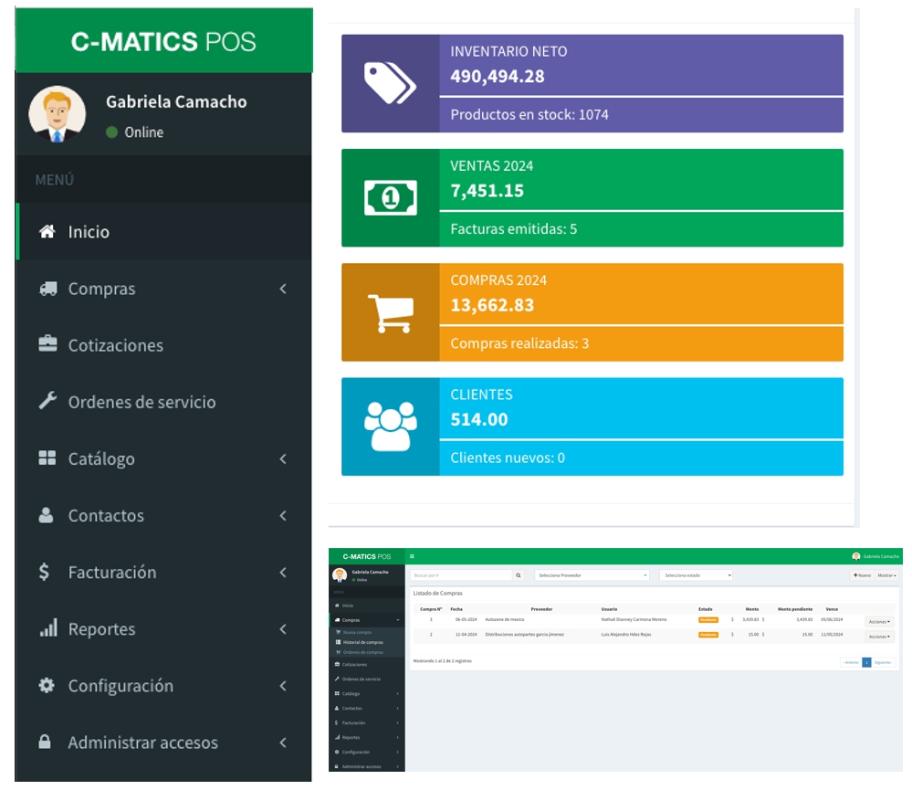 - Genera tus ordenes de compra y controla el ingreso de la mercancía a tu inventario.