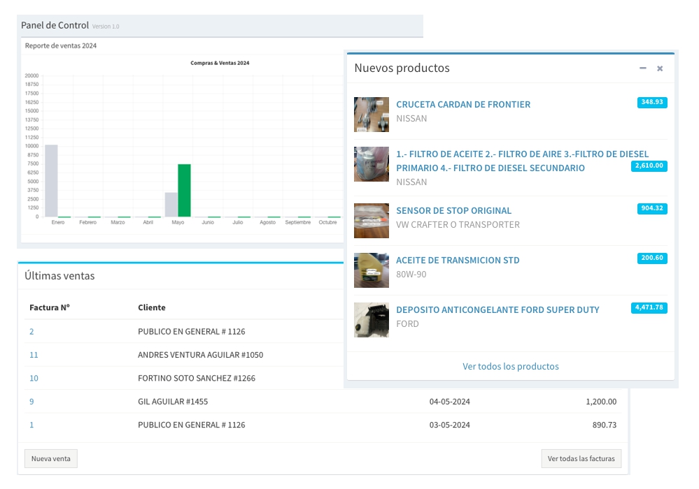 - Venta de productos o refacciones en mostrador.